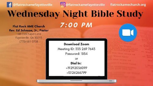 Join us every Wednesday, Via Zoom at 7 PM, for our Wednesday Evening Bible Study, taught by our Lead Pastor, Reverend Johnson!